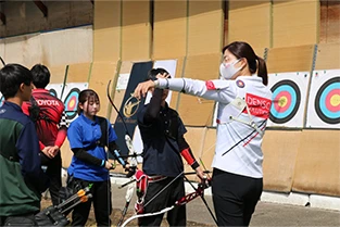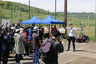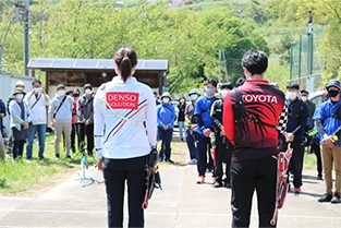4/30(土)、長野市茶臼山アーチェリー場にて「アーチェリーオリンピックメダリスト交流会 in 長野」が開催され、ロンドン五輪女子団体銅メダルの早川漣選手(デンソーソリューション)と、東京五輪男子団体銅メダルの武藤弘樹選手(トヨタ自動車)がゲスト参加。約60名の長野県民が訪れ、交流を深めました。