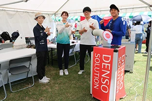 デンソーソリューションはイベント企画・運営に協力し、選手や関係者が集まるブースにおいて、必要なスポットだけを集中冷房できる「デンソースポットクーラー インスパック」を設置。