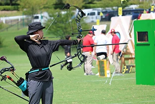 通常、アーチェリーの大会・イベントは、競技者中心で進行し観客や家族などアーチェリー未経験者には親しみにくいのが一般的。