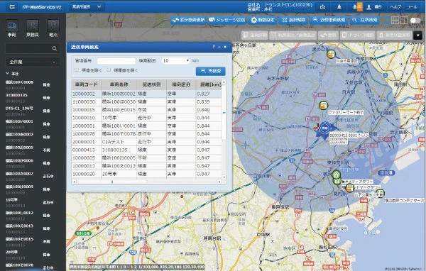 近傍車両検索機能とメッセージ送信機能により、ドライバーに的確な指示を出すことができます。