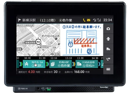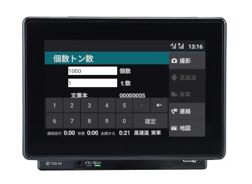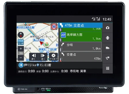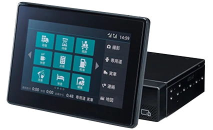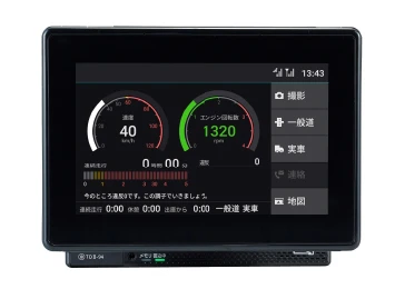 | 入出力インターフェース | 車速センサ、エンジン回転センサ アナログ入力×5、汎用入力×8、 ETC通信ポート、RS-232C×3、 SDXC対応カードスロット、Bluetooth5.0、 共通端子、免許証リーダー、 CAN入力、UBS、 3軸Gセンサー、3軸ジャイロセンサー | |