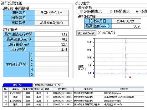 いつ時速何kmで走行していたか、4時間の長時間運転をオーバーしていないか、休憩は適切に取得しているか、デジタコの日報を見れば一目でわかります。