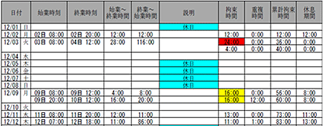 (改善基準告示の特例などの一部には対応しておりませんのでご了承ください。)