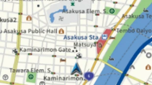 アンチエイリアス対応により、地図のルート線、目的地直線を滑らかに描画。地図の見やすさを向上しています