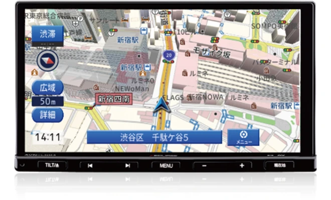 - ※1Audio(オーディオ)・Visual(ビジュアル)・Navigation(ナビゲーション)の各機能を一体にしてコンソールに埋め込んだインダッシュタイプ(AV一体機)のカーナビゲーションシステム。