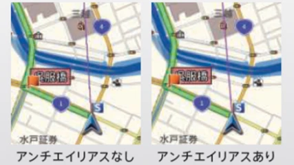 - ※アンチエイリアス:斜線や曲線などに発生する微細な階段状のギザギザした部分を目立たなくする手法。