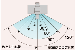 風の吹出し口がスイングするため、広い空調範囲をカバー。 様々な設置条件にも対応します。