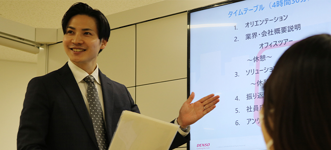デンソーソリューションのインターンシップ・仕事体験は、実際に当社で扱っている商品や事業テーマを題材にデンソーソリューションの社員になったつもりで業務ミッションに挑戦していただくプログラムです。