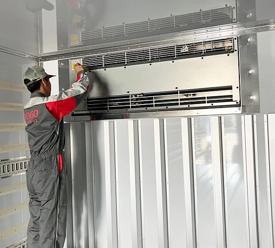 冷凍機架装業務では、通常ボディメーカーの方とのやり取りのみでエンドユーザーの方と話す事はありませんが、運送業者さんへ訪問し冷凍車の納車前点検を実施する機会がありました。その際、お客様から「デンソーさんの冷凍機はよく冷えるね」とお褒めの言葉を頂き、これからも冷凍機架装を頑張ろうと思いました。