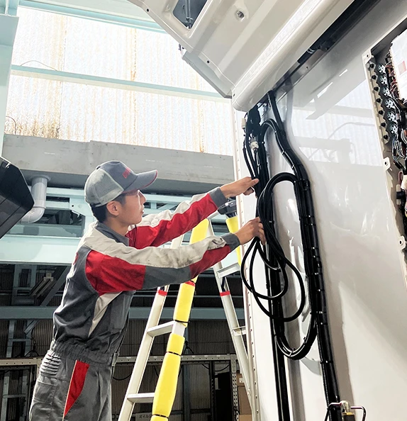 24Vトラックの冷凍機の架装(特殊装置の取り付け等)・点検・修理や12V乗用車へのドライブレコーダー等の用品取付、エアコン点検・修理を主に担当しています。