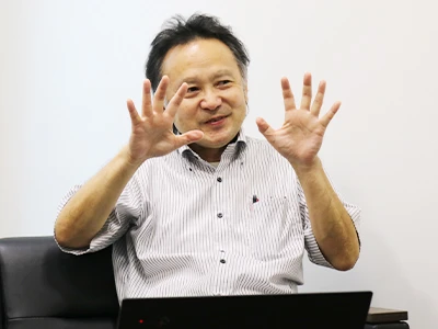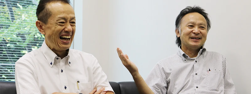 - 研究会社だとあまり人との付き合いも関係なく黙々とひたすら掘り下げていくってのもあるんだけど、うちのような会社だったら他人の力を上手に引き出してやっていく人たちの方が大事だからね。だって新しいものを作るんだよ。今までの技術のベースはいるかもしれないけど、違うことをやるんだから当然新しいものを引き出せる力がある方が大事だよね。だからなるべくさぁ俺らの部方針じゃないけど、ちゃんとしゃべれるエンジニアになれっていうのはそこなんだけどさ、アピールが下手なんだよ(笑)。俺も昔から、外に出て場数踏んで相手にちゃんとわかってもらえるように心掛けなさいってずっと言われてきたから。多少はそういう風にやれてるかなと思いながらも、まだまだ営業さんたちの前だと全然太刀打ちできない(笑)。